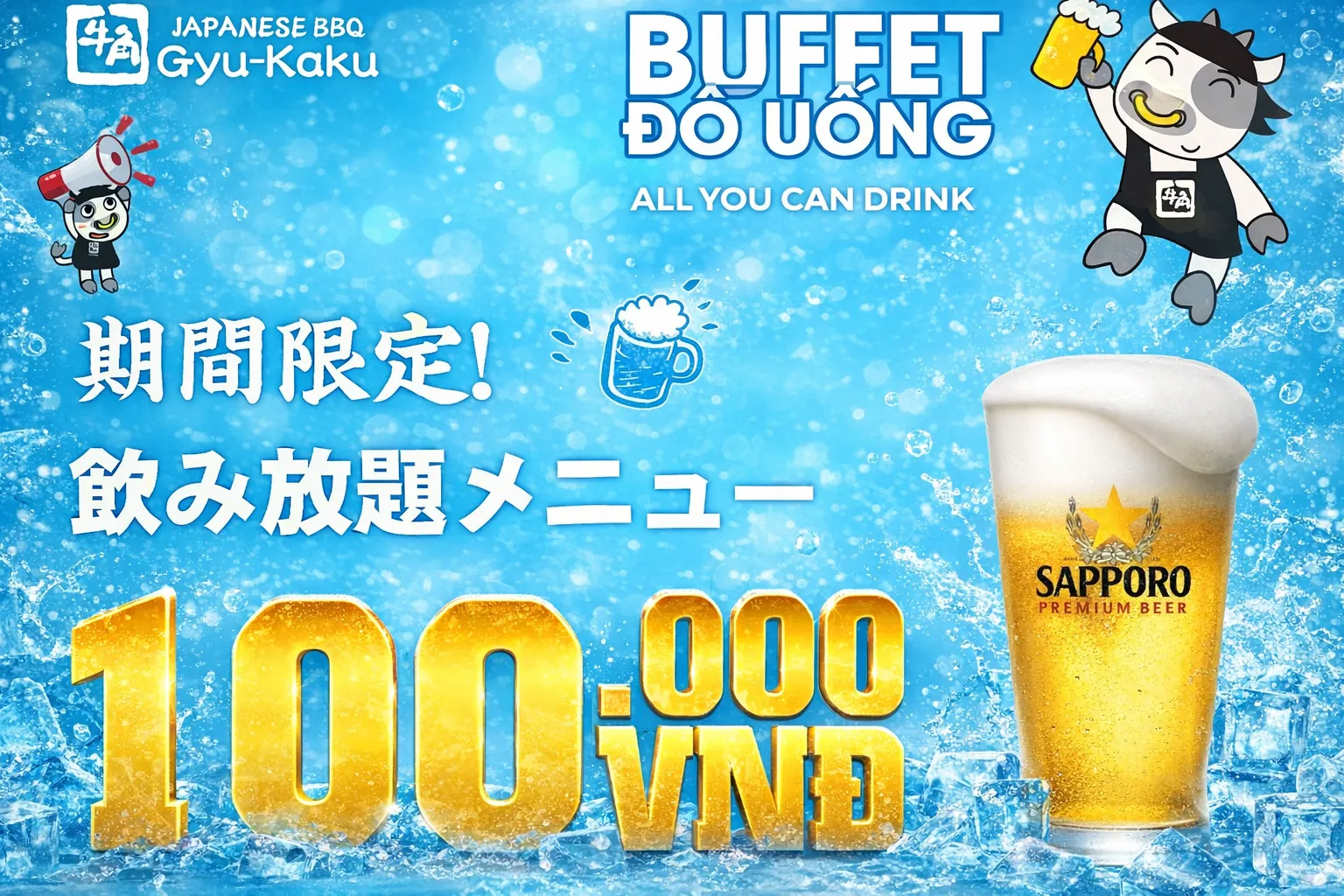 Dù bạn gọi món lẻ, ăn Buffet hay Combo, đều có thể đăng ký gói uống không giới hạn tại Gyu-Kaku!