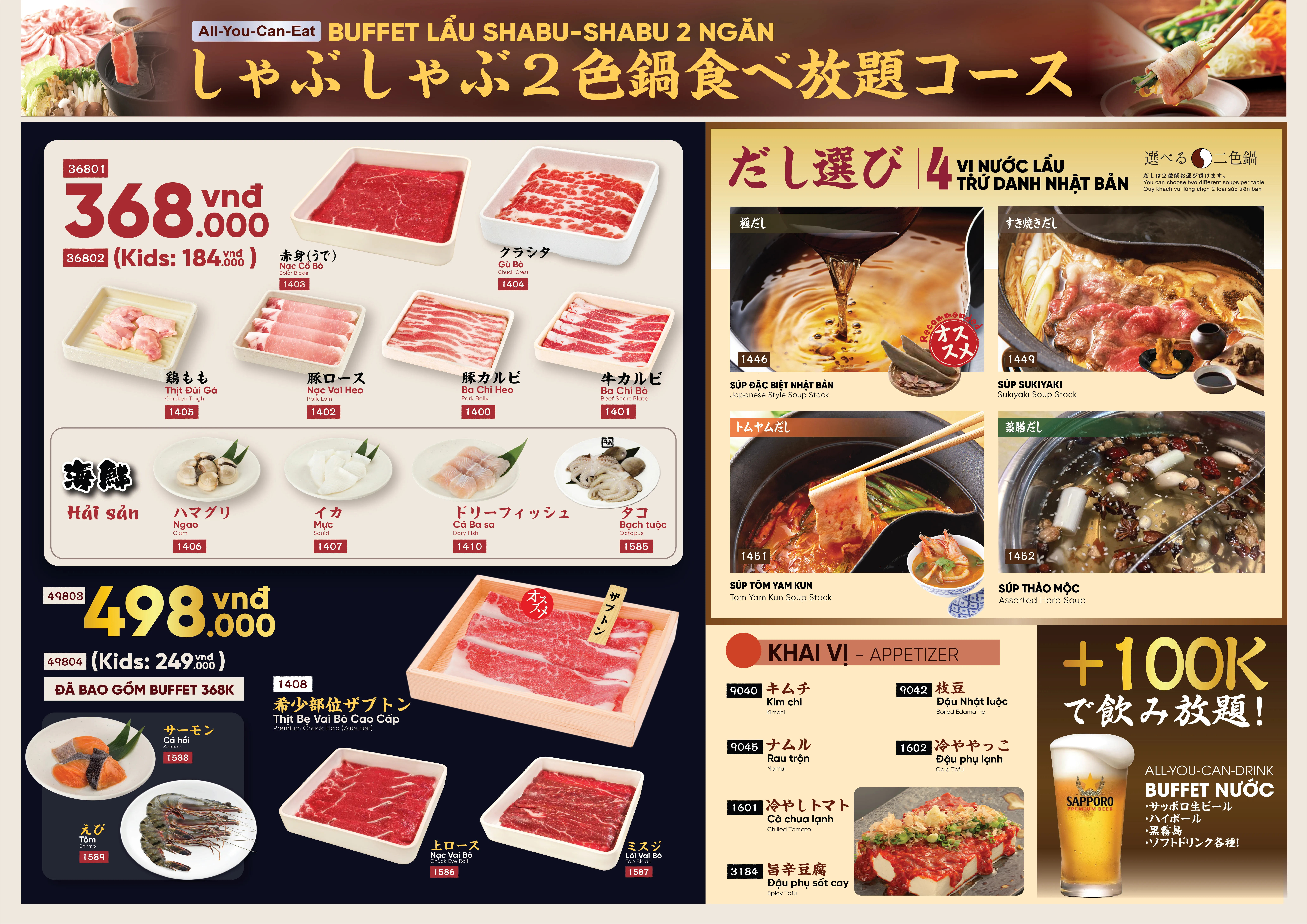 BUFFET LẨU SHABU SHABU 2 NGĂN 368K & 498K