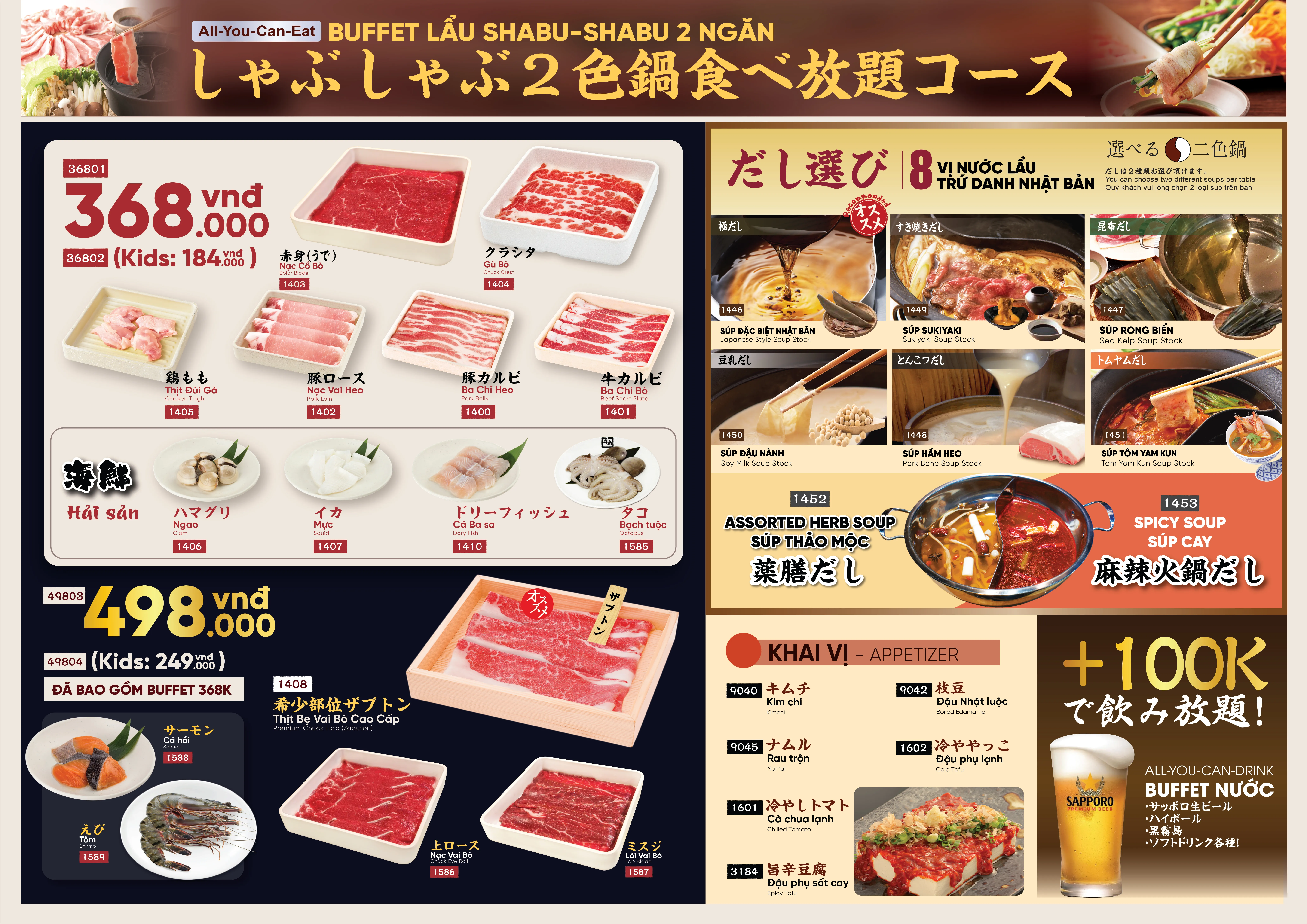 + Buffet Lẩu Shabu Shabu 2 ngăn 368K & 498K