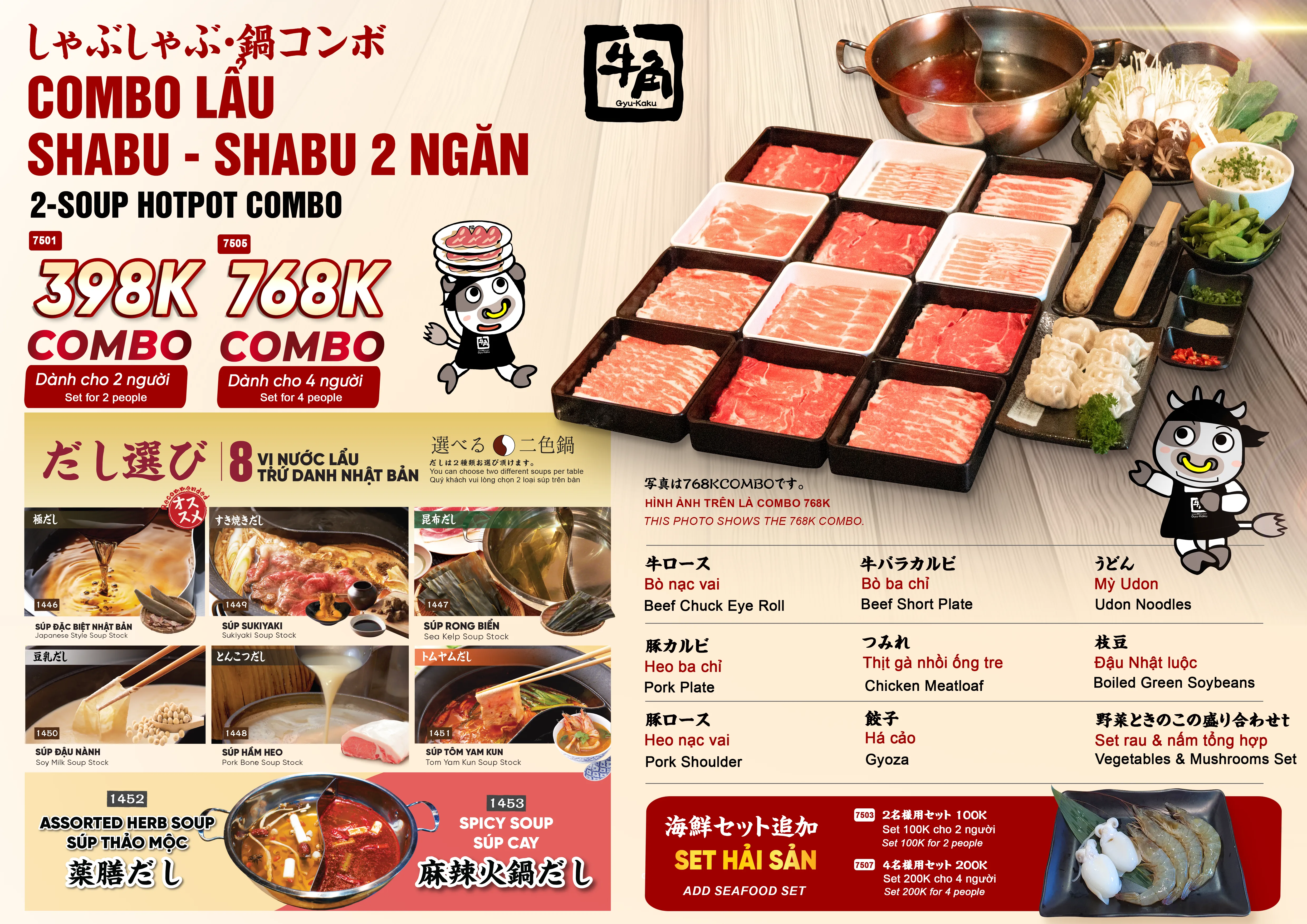 * Combo Lẩu 2 ngăn 398K, 768K - Giá chưa bao gồm VAT
